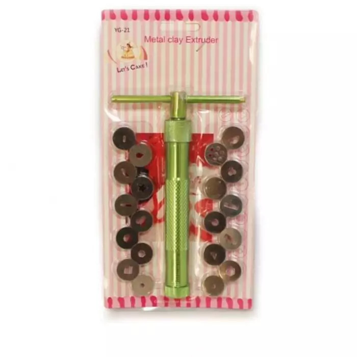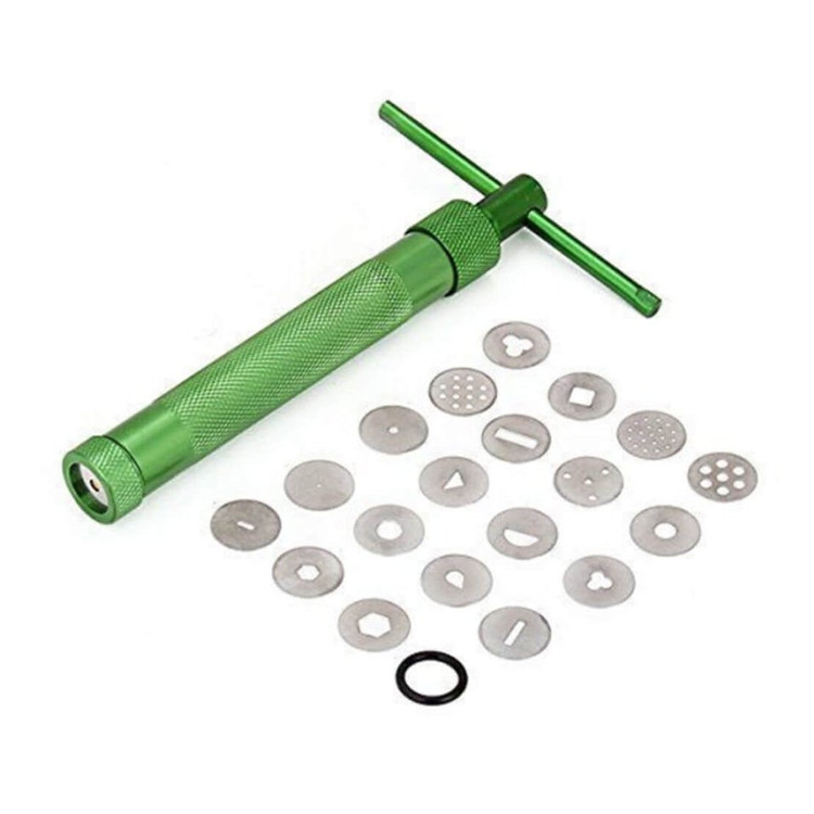 این تپانچه فوندانت شامل ۲۰ طرح مختلف؛ به صورت دایره ای و با قطر ۲ سانتی متر است که بر روی تپانچه فوندانت قرار گرفته و با چرخش اهرم ، فوندانت را به شکل مورد نظر شما خارج می سازد.