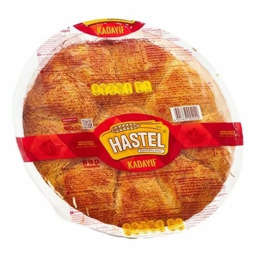 رشته کادایف هاستل Hastle با وزن 400 گرم از گندم خالص تهیه شده و مخصوص تهیه دسر، شیرینی و باقلوا با ارزش غذایی بالا می باشد.