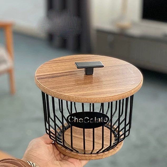 کندی و شکلات خوری یا جا گردو فلزی درب چوب طرح بلوط مناسب برای استفاده در آشپرخانه و حتی استفاده در پذیرایی، جنس درب و زیره چوبی از چوب ام دی اف هست